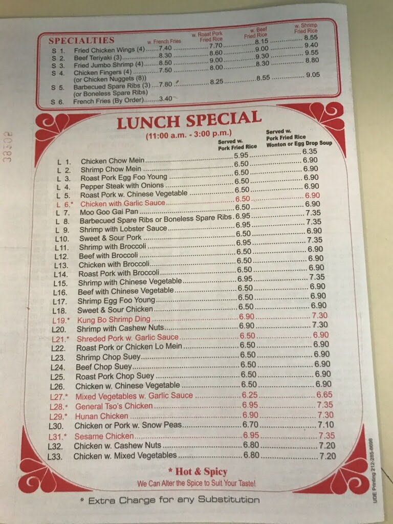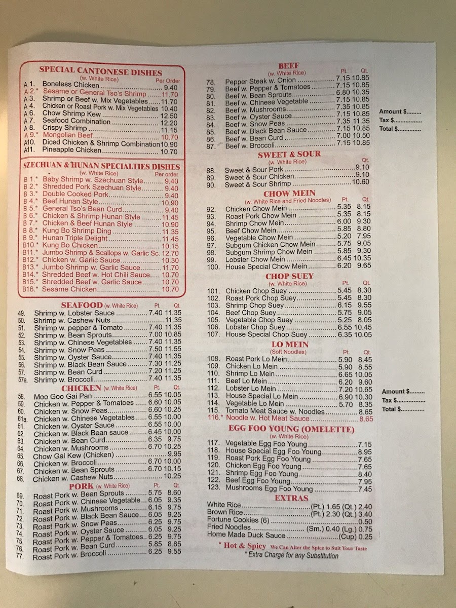 The menu is well suited to both dine-in and meal delivery, making it easy to enjoy hearty dishes like barbecued spare ribs or chicken with black bean sauce at home or on the go. Light soups such as wonton or egg drop are ideal for a warm start, while options like fried jumbo shrimp and chicken fingers appeal to those looking for simple, satisfying bites.